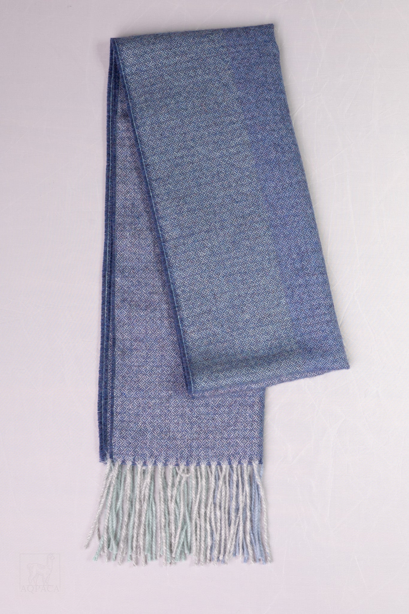 Baby Alpaca Wool Scarf – Blue with Fringe, Luxuriously Soft and Sustainable
