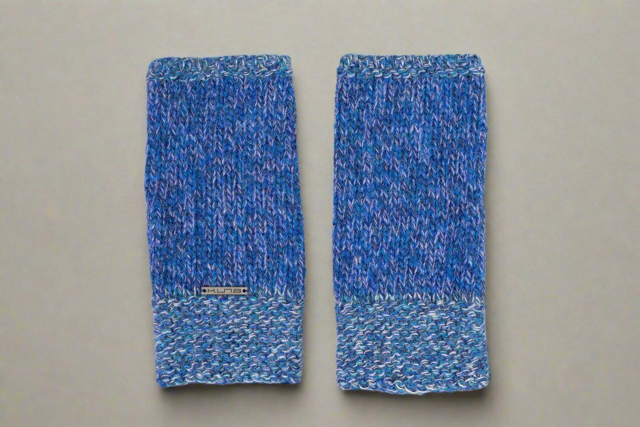 Handmade 100% Baby Alpaca Wool Fingerless Gloves – Soft Blue & Teal Blend