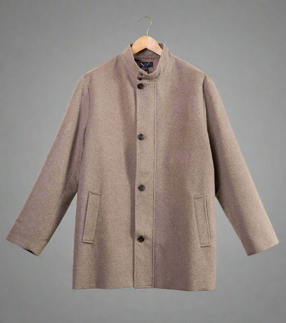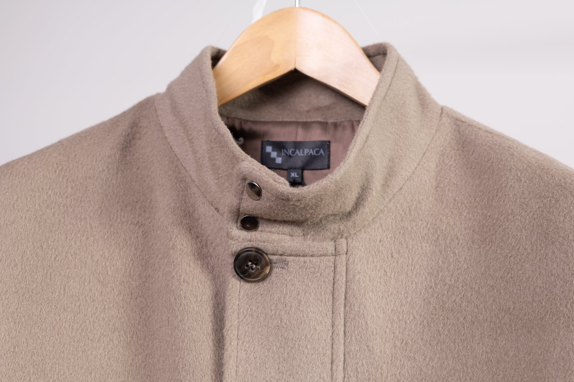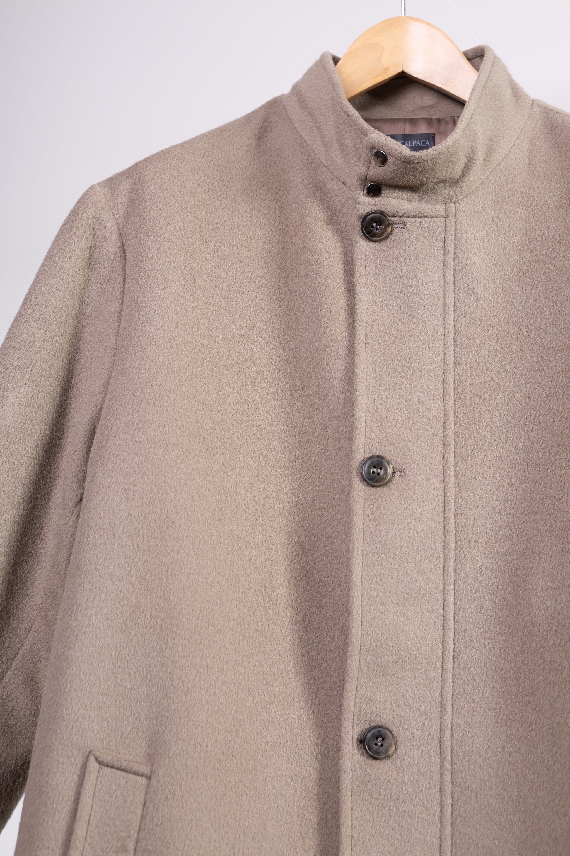 Made from a luxurious 60% premium alpaca and 40% wool blend, this men's beige button-up coat offers superior warmth, softness, and durability. Perfect for cooler weather, it combines the natural benefits of alpaca and wool for a stylish, high-quality outerwear piece. Experience the timeless luxury and comfort of alpaca wool with every wear.