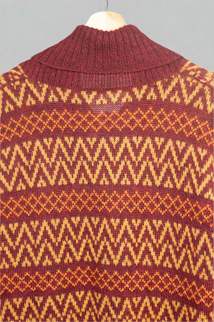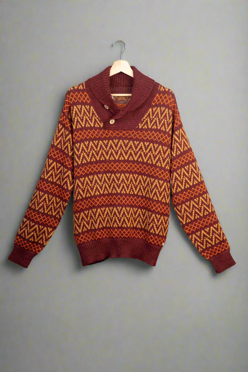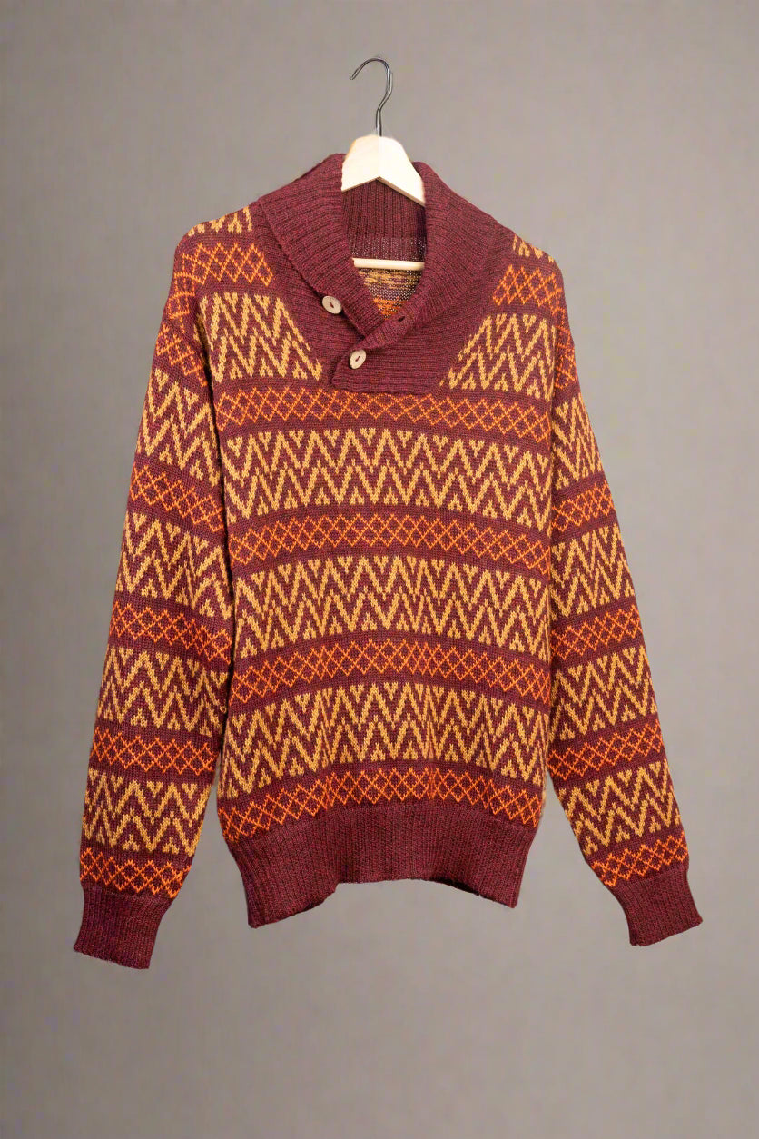 Elevate your winter wardrobe with this luxurious alpaca wool sweater from Aqpaca. Featuring a warm shawl collar and a vibrant Andean-inspired geometric pattern in red and yellow hues, this sweater combines traditional craftsmanship with modern design. Made from sustainably sourced alpaca wool, it offers exceptional softness, warmth, and durability while being lightweight and breathable. The intricate patterns are a nod to the rich textile heritage of the Andes, making this piece both stylish and meaningful. Perfect for casual outings or cozy nights by the fire. Experience quiet luxury and timeless style with Aqpaca.